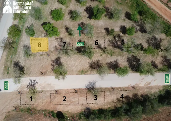 6. El emplazamiento vacante para 2026 es el puesto nº 8 (la ermita se encuentra a la izquierda de la imagen y los servicios a la derecha):